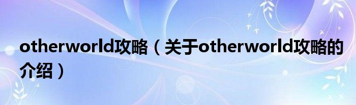 大家好,小安来为大家解答以上的问题。otherworld攻略,关于otherworld攻略的介绍很多人还不知道,现在让我们一起来看看吧!