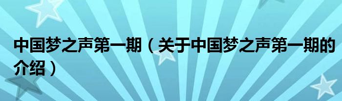 大家好,小安来为大家解答以上的问题。中国梦之声第一期,关于中国梦之声第一期的介绍很多人还不知道,现在让我们一起来看看吧!
