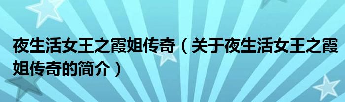 本文关于夜生活女王之霞姐传奇的简介就讲解完毕,希望对大家有所帮助。