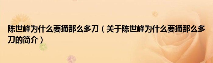 本文关于陈世峰为什么要捅那么多刀的简介就讲解完毕,希望对大家有所帮助。