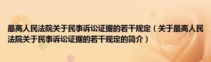 大家好,最高人民法院关于民事诉讼证据的若干规定,关于最高人民法院关于民事诉讼证据的若干规定的简介很多人还不知道,现在让我们一起来看看吧!
