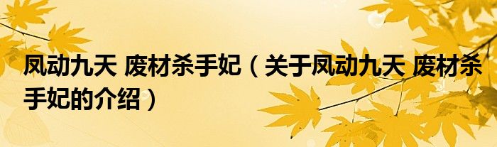大家好,小安来为大家解答以上的问题。凤动九天 废材杀手妃,关于凤动九天 废材杀手妃的介绍很多人还不知道,现在让我们一起来看看吧!