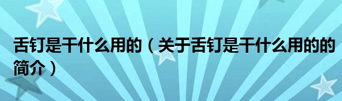 大家好,舌钉是干什么用的,关于舌钉是干什么用的的简介很多人还不知道,现在让我们一起来看看吧!