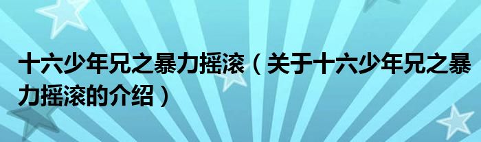 大家好,小安来为大家解答以上的问题。十六少年兄之暴力摇滚,关于十六少年兄之暴力摇滚的介绍很多人还不知道,现在让我们一起来看看吧!