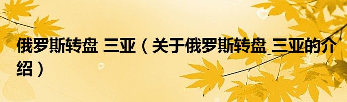 大家好,小安来为大家解答以上的问题。俄罗斯转盘 三亚,关于俄罗斯转盘 三亚的介绍很多人还不知道,现在让我们一起来看看吧!