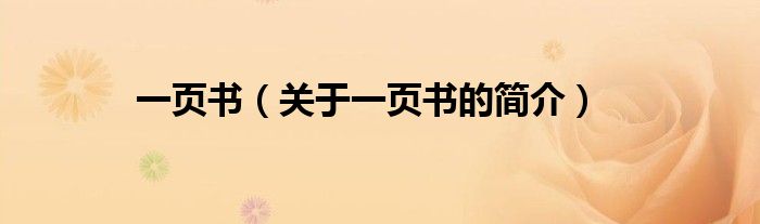 本文关于一页书的简介就讲解完毕,希望对大家有所帮助。
