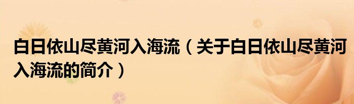 本文关于白日依山尽黄河入海流的简介就讲解完毕,希望对大家有所帮助。