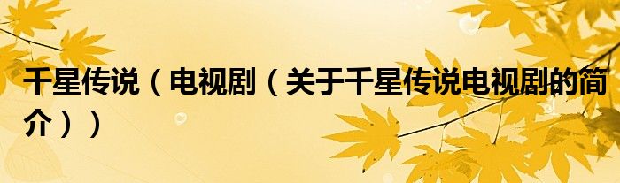 本文关于千星传说 电视剧的简介就讲解完毕,希望对大家有所帮助。