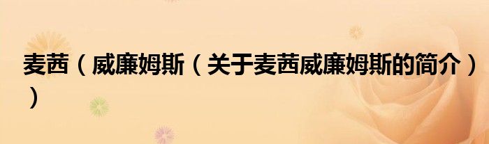 本文关于麦茜 威廉姆斯的简介就讲解完毕,希望对大家有所帮助。