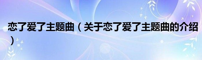 大家好,小安来为大家解答以上的问题。恋了爱了主题曲,关于恋了爱了主题曲的介绍很多人还不知道,现在让我们一起来看看吧!