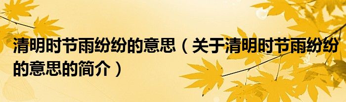 本文关于清明时节雨纷纷的意思的简介就讲解完毕,希望对大家有所帮助。