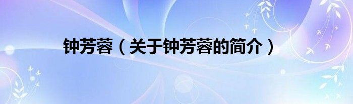 大家好,钟芳蓉,关于钟芳蓉的简介很多人还不知道,现在让我们一起来看看吧!