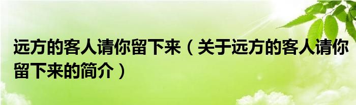 本文关于远方的客人请你留下来的简介就讲解完毕,希望对大家有所帮助。