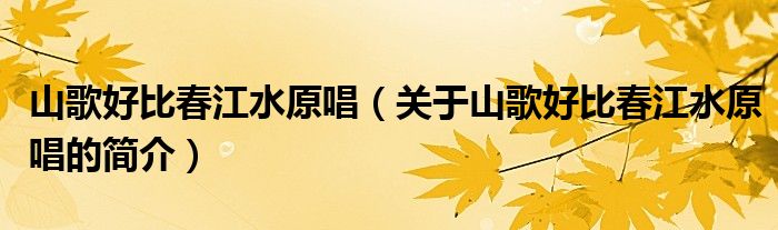 本文关于山歌好比春江水原唱的简介就讲解完毕,希望对大家有所帮助。