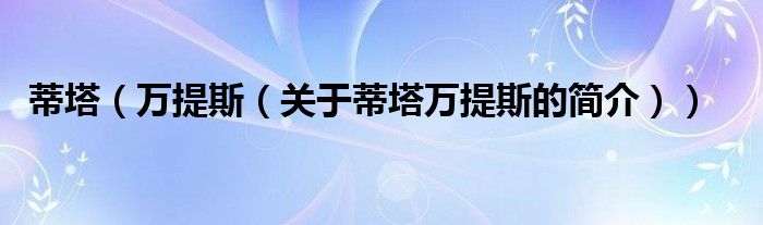 大家好,蒂塔 万提斯,关于蒂塔 万提斯的简介很多人还不知道,现在让我们一起来看看吧!