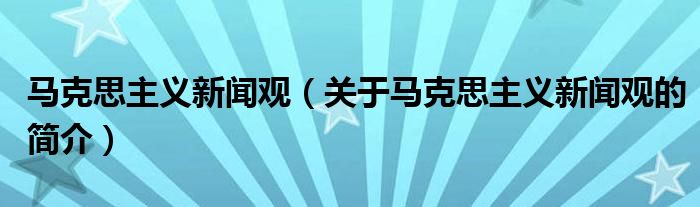 大家好,马克思主义新闻观,关于马克思主义新闻观的简介很多人还不知道,现在让我们一起来看看吧!