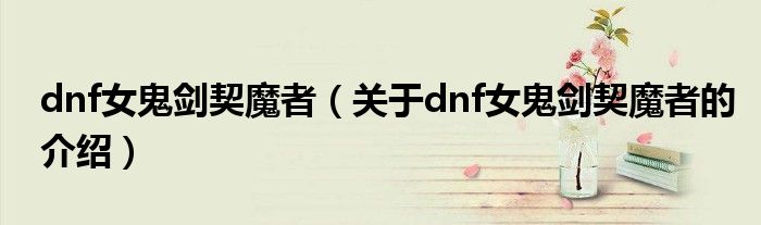 大家好,小安来为大家解答以上的问题。dnf女鬼剑契魔者,关于dnf女鬼剑契魔者的介绍很多人还不知道,现在让我们一起来看看吧!