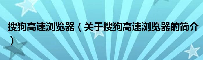大家好,搜狗高速浏览器,关于搜狗高速浏览器的简介很多人还不知道,现在让我们一起来看看吧!