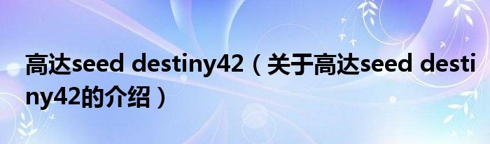 大家好,小安来为大家解答以上的问题。高达seed destiny42,关于高达seed destiny42的介绍很多人还不知道,现在让我们一起来看看吧!