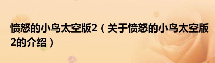 大家好,小安来为大家解答以上的问题。愤怒的小鸟太空版2,关于愤怒的小鸟太空版2的介绍很多人还不知道,现在让我们一起来看看吧!