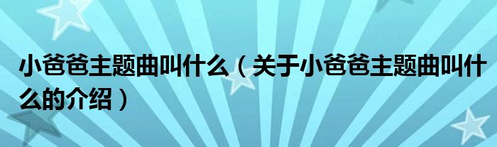 大家好,小安来为大家解答以上的问题。小爸爸主题曲叫什么,关于小爸爸主题曲叫什么的介绍很多人还不知道,现在让我们一起来看看吧!