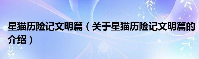 大家好,小安来为大家解答以上的问题。星猫历险记文明篇,关于星猫历险记文明篇的介绍很多人还不知道,现在让我们一起来看看吧!