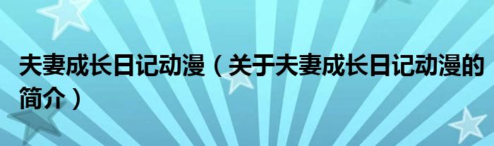 大家好,夫妻成长日记动漫,关于夫妻成长日记动漫的简介很多人还不知道,现在让我们一起来看看吧!