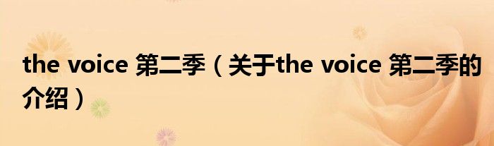 大家好,小安来为大家解答以上的问题。the voice 第二季,关于the voice 第二季的介绍很多人还不知道,现在让我们一起来看看吧!