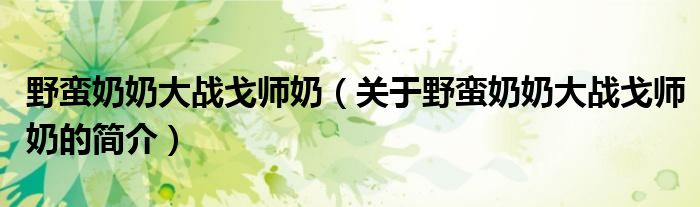 大家好,野蛮奶奶大战戈师奶,关于野蛮奶奶大战戈师奶的简介很多人还不知道,现在让我们一起来看看吧!