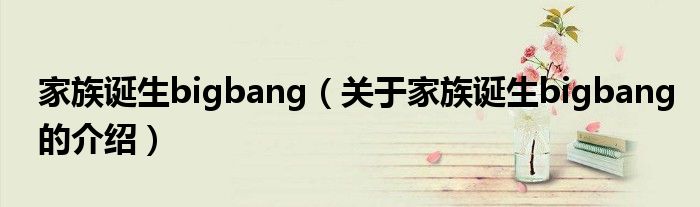 大家好,小安来为大家解答以上的问题。家族诞生bigbang,关于家族诞生bigbang的介绍很多人还不知道,现在让我们一起来看看吧!