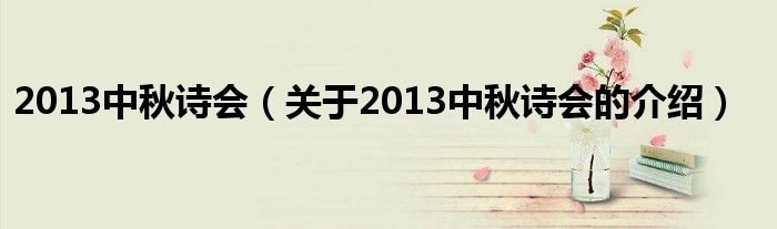 大家好,小安来为大家解答以上的问题。2013中秋诗会,关于2013中秋诗会的介绍很多人还不知道,现在让我们一起来看看吧!