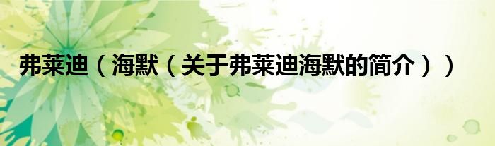大家好,弗莱迪 海默,关于弗莱迪 海默的简介很多人还不知道,现在让我们一起来看看吧!