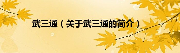 本文关于武三通的简介就讲解完毕,希望对大家有所帮助。