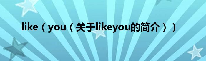 大家好,like you,关于like you的简介很多人还不知道,现在让我们一起来看看吧!