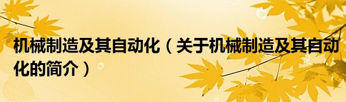 本文关于机械制造及其自动化的简介就讲解完毕,希望对大家有所帮助。