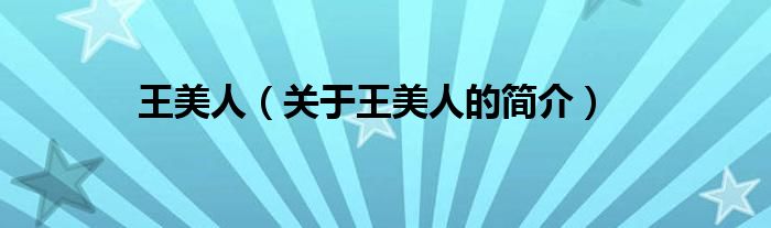 大家好,王美人,关于王美人的简介很多人还不知道,现在让我们一起来看看吧!