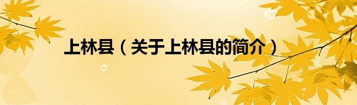 本文关于上林县的简介就讲解完毕,希望对大家有所帮助。