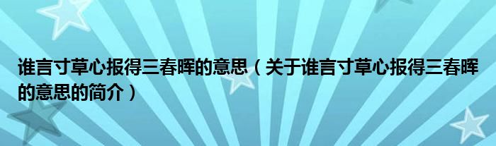 大家好,谁言寸草心报得三春晖的意思,关于谁言寸草心报得三春晖的意思的简介很多人还不知道,现在让我们一起来看看吧!