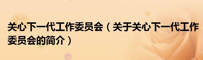 大家好,关心下一代工作委员会,关于关心下一代工作委员会的简介很多人还不知道,现在让我们一起来看看吧!