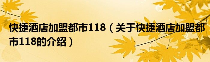 大家好,小安来为大家解答以上的问题。快捷酒店加盟都市118,关于快捷酒店加盟都市118的介绍很多人还不知道,现在让我们一起来看看吧!