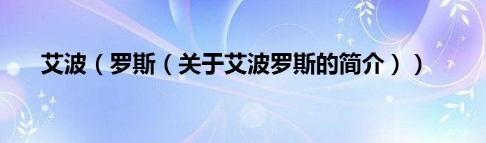 大家好,艾波 罗斯,关于艾波 罗斯的简介很多人还不知道,现在让我们一起来看看吧!