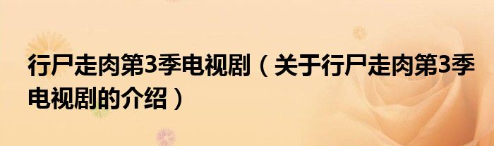大家好,小安来为大家解答以上的问题。行尸走肉第3季电视剧,关于行尸走肉第3季电视剧的介绍很多人还不知道,现在让我们一起来看看吧!