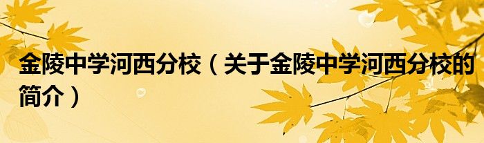 本文关于金陵中学河西分校的简介就讲解完毕,希望对大家有所帮助。