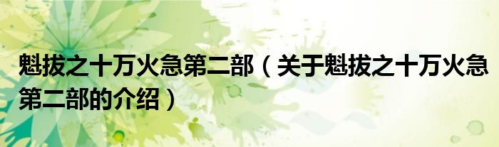 大家好,小安来为大家解答以上的问题。魁拔之十万火急第二部,关于魁拔之十万火急第二部的介绍很多人还不知道,现在让我们一起来看看吧!