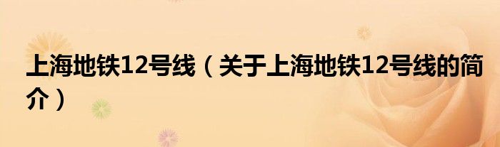 本文关于上海地铁12号线的简介就讲解完毕,希望对大家有所帮助。