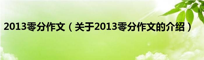 大家好,小安来为大家解答以上的问题。2013零分作文,关于2013零分作文的介绍很多人还不知道,现在让我们一起来看看吧!