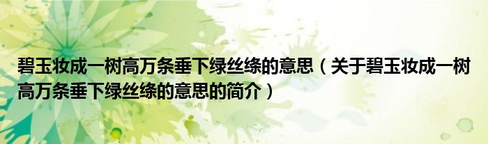 本文关于碧玉妆成一树高万条垂下绿丝绦的意思的简介就讲解完毕,希望对大家有所帮助。
