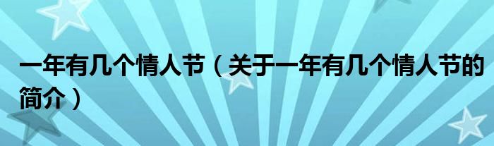 大家好,一年有几个情人节,关于一年有几个情人节的简介很多人还不知道,现在让我们一起来看看吧!