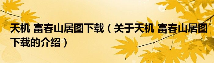 大家好,小安来为大家解答以上的问题。天机 富春山居图下载,关于天机 富春山居图下载的介绍很多人还不知道,现在让我们一起来看看吧!