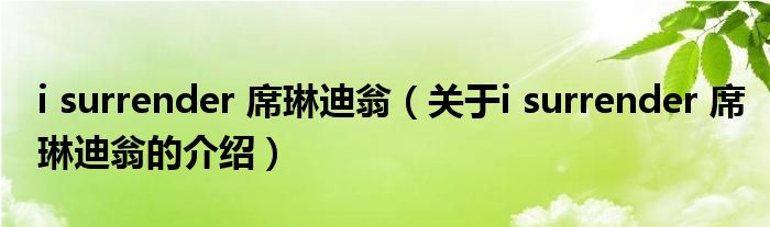 大家好,小安来为大家解答以上的问题。i surrender 席琳迪翁,关于i surrender 席琳迪翁的介绍很多人还不知道,现在让我们一起来看看吧!